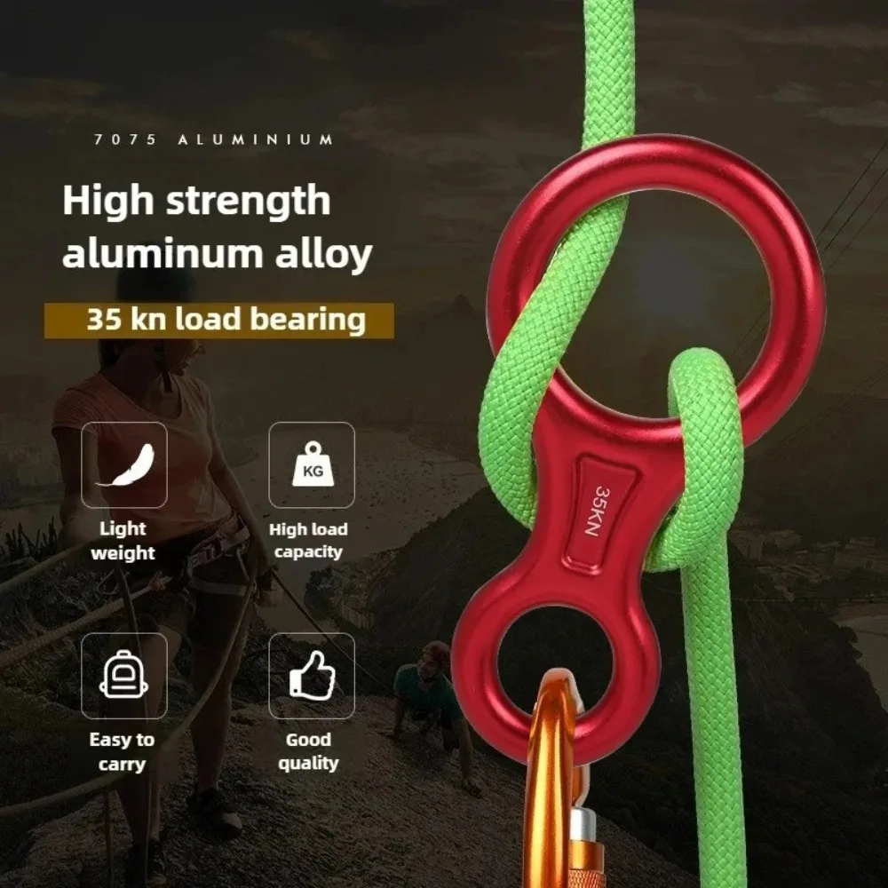 This 35kN figure 8 descender is designed for controlled rappelling and rope rigging in climbing and rescue applications. Made from durable aluminum alloy, it provides high strength while remaining lightweight for easy handling. The large bent-ear design helps improve friction control and rope management during descent. Suitable for rock climbing, aerial work, mountaineering, and rescue operations. Engineered for smooth rope flow and reliable performance under load. Compatible with a variety of rope sizes typically used in climbing systems. Compact and corrosion-resistant, it is built for rugged outdoor environments. A dependable descender device for safe and controlled rope operations.
