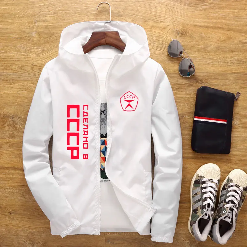This CCCP hooded jacket features a bold Soviet Union–inspired design. It is made from lightweight material suitable for spring and autumn. The bomber style gives it a sporty, casual look. A hood provides extra protection from wind and light rain. The jacket is designed for both men and women. Its comfortable fit makes it ideal for daily wear or themed events. The front zipper allows easy on and off. Ribbed cuffs and hem enhance comfort and warmth. The printed USSR and KGB elements highlight retro aesthetics. This jacket is a unique choice for fans of vintage Soviet-style fashion.