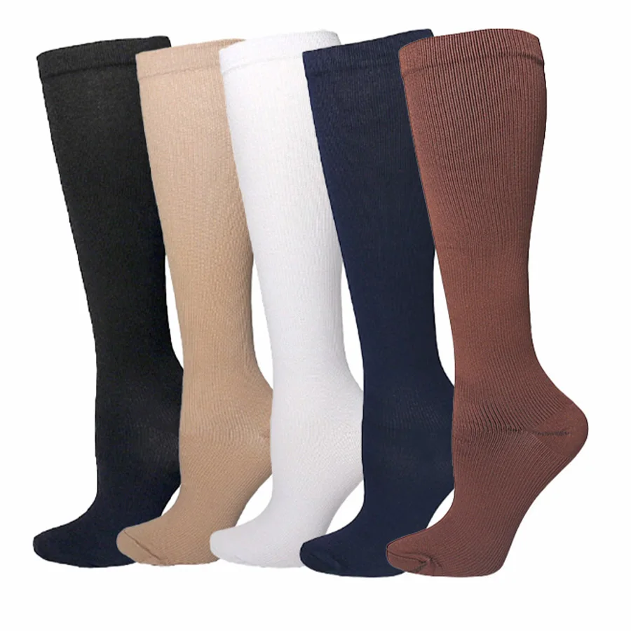 These Compression Athletic Socks provide firm, comfortable support for both men and women during active workouts and daily wear. Designed to enhance circulation, they help reduce fatigue and improve performance. The breathable fabric ensures all-day comfort by wicking away moisture and keeping your feet dry. Their snug yet flexible fit offers stability for high-impact activities like running, hiking, and cycling. Each pair is crafted for durability, resisting wear even during frequent use. The socks provide targeted support in key areas to minimize strain and discomfort. With five pairs included, they offer excellent value for athletes and active individuals. Ideal for training, travel, or recovery, these socks help keep your feet energized and supported throughout the day.