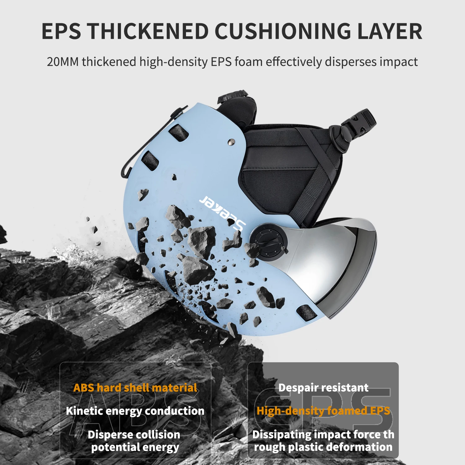 This Professional Ski Safety Helmet provides superior protection and comfort for outdoor skiing and snowboarding. Constructed with a durable EPS+ABS shell, it absorbs impact while maintaining lightweight wearability. The integrated goggles offer clear vision and protection against wind, snow, and UV rays. Breathable ventilation channels help regulate temperature, keeping you comfortable during long runs. Adjustable straps ensure a secure and personalized fit for all head sizes. Designed for professional and recreational skiers, it combines safety, style, and functionality. The helmet’s sleek design enhances aerodynamics while maintaining durability. Perfect for skiing, snowboarding, and other winter sports activities. Provides reliable protection without compromising comfort or visibility. A must-have accessory for safe and enjoyable winter adventures.