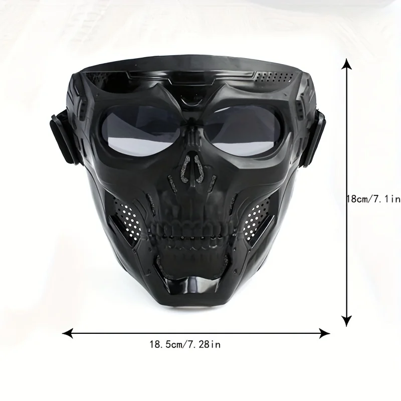 This skull motorcycle mask with goggles offers a bold and functional design for riders. Its windproof construction protects your face during high-speed travel. The integrated goggles provide clear visibility and eye protection. Durable materials ensure long-lasting performance in outdoor conditions. The mask is lightweight and comfortable for extended wear. It is suitable for motorcycle riding, cycling, and other outdoor activities. The skull design adds a unique and eye-catching style. Elastic straps provide a secure and adjustable fit. It also works well as a Halloween or cosplay accessory. This mask combines protection, comfort, and visual impact for any adventure.