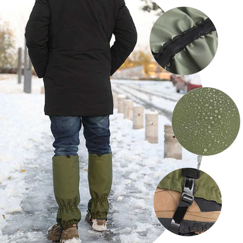 This 1 pair of waterproof snow gaiters is designed to keep your lower legs and boots protected from snow, rain, mud, and trail debris during hiking, mountaineering, and camping adventures. Made from lightweight yet durable materials, they provide reliable weather resistance without adding bulk. The secure fastening system ensures a snug fit around boots and calves, helping prevent moisture and dirt from entering your footwear. Suitable for both men and women, these boot gaiters are ideal for trekking, winter hiking, backpacking, and other outdoor activities where dependable leg protection is essential.